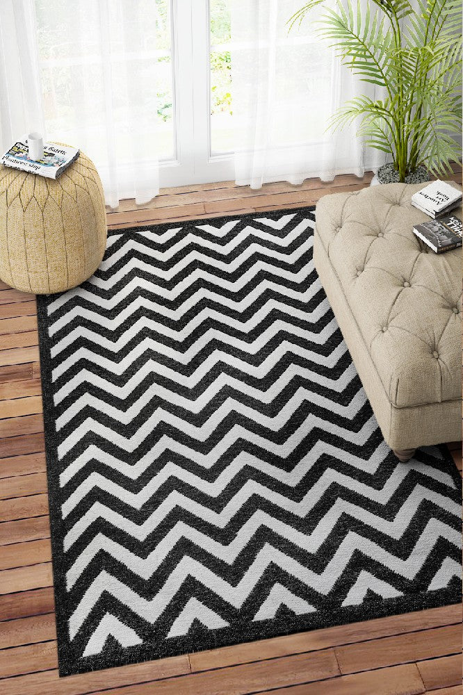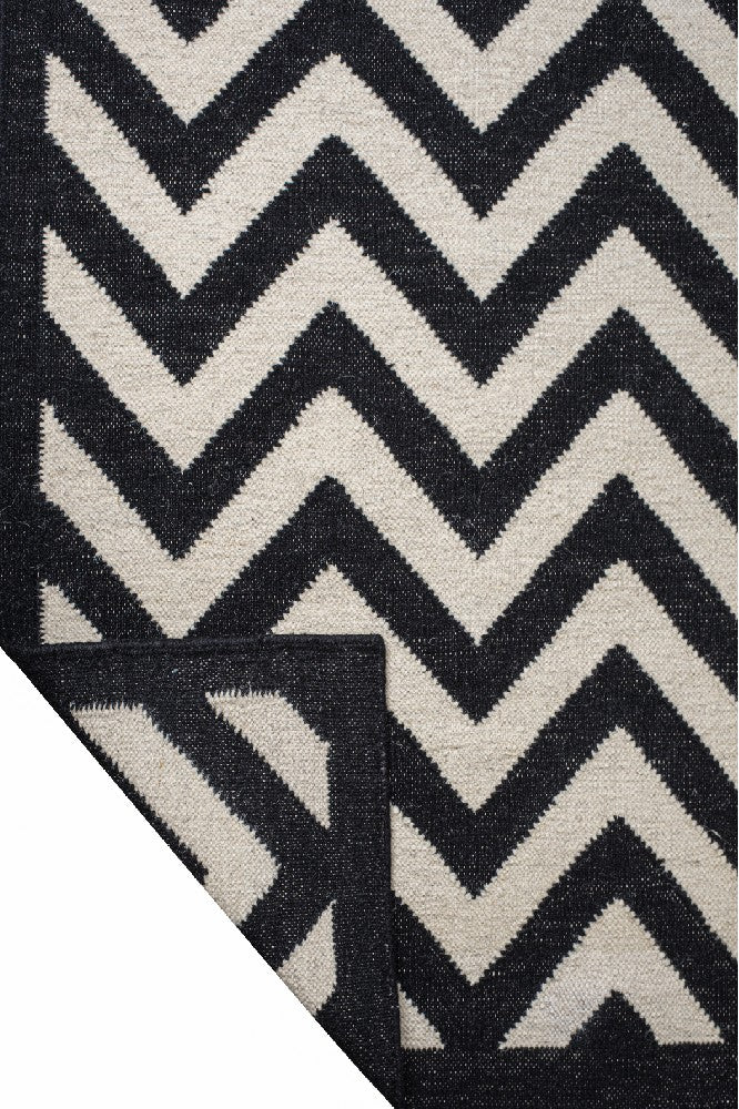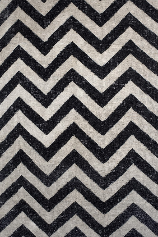 BLACK AND WHITE CHEVRON KILIM HAND WOVEN DHURRIE