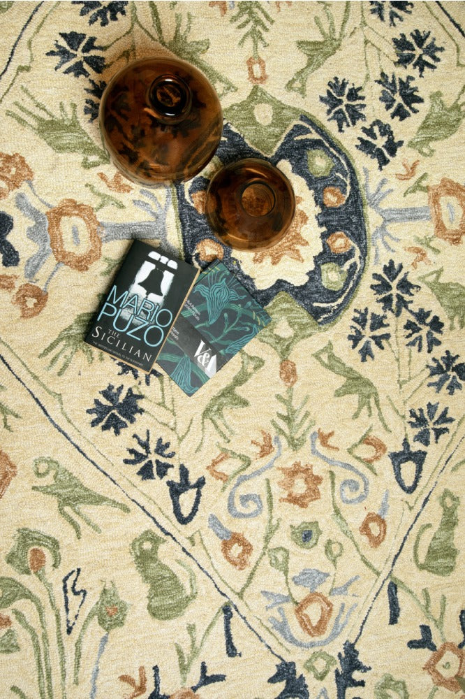 BEIGE MULTICOLOR TRADITIONAL HAND TUFTED CARPET