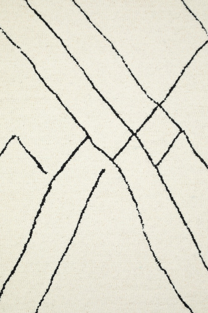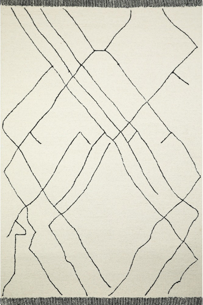 IVORY BLACK GEOMETRIC HAND TUFTED CARPET