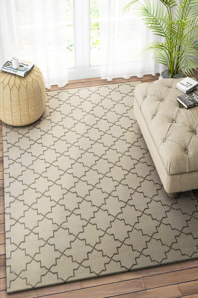 BEIGE MOROCCAN HAND WOVEN DHURRIE