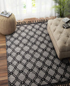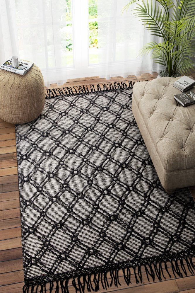 BLACK AND IVORY KILIM HAND WOVEN DHURRIE