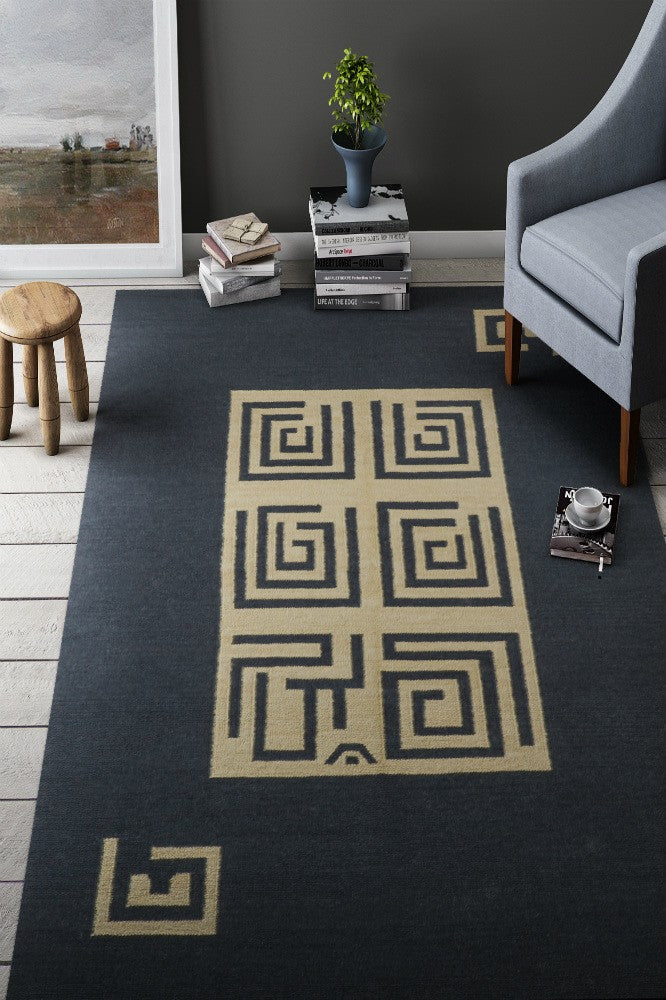BLACK AND IVORY MODERN HAND WOVEN DHURRIE