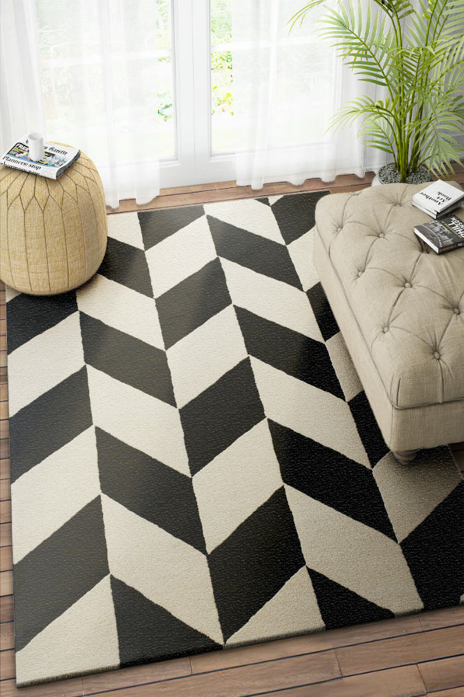 BLACK AND WHITE HERRINGBONE HAND TUFTED CARPET