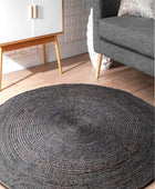 BLACK ROUND JUTE HAND WOVEN DHURRIE