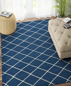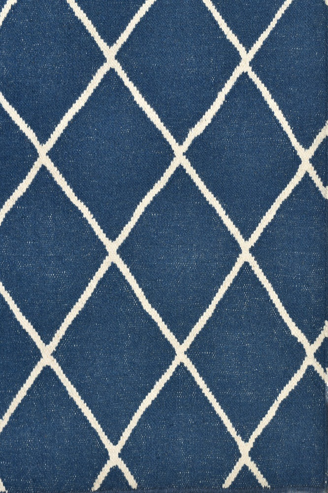 BLUE AND IVORY GEOMETRIC HAND WOVEN DHURRIE
