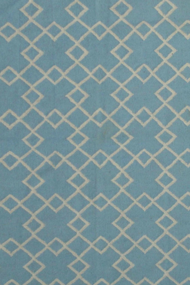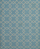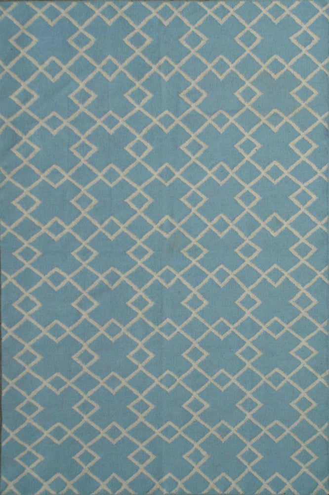 BLUE AND IVORY GEOMETRIC HAND WOVEN DHURRIE