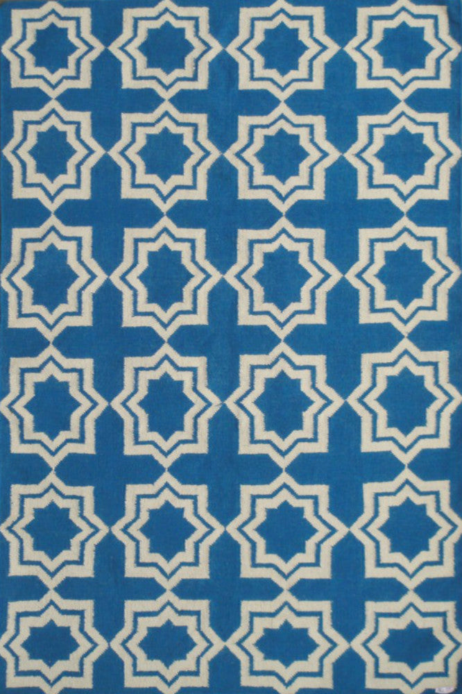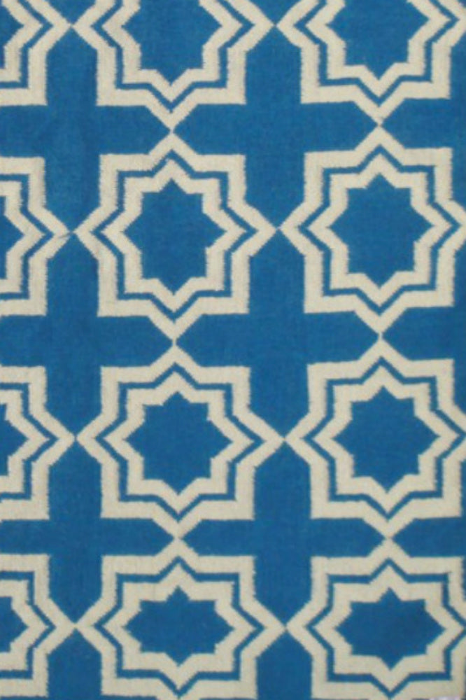 BLUE AND IVORY MOROCCAN HAND WOVEN DHURRIE