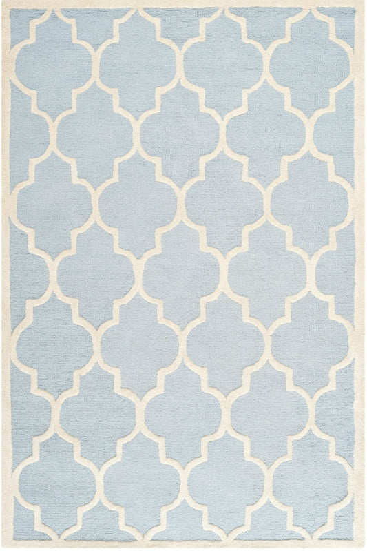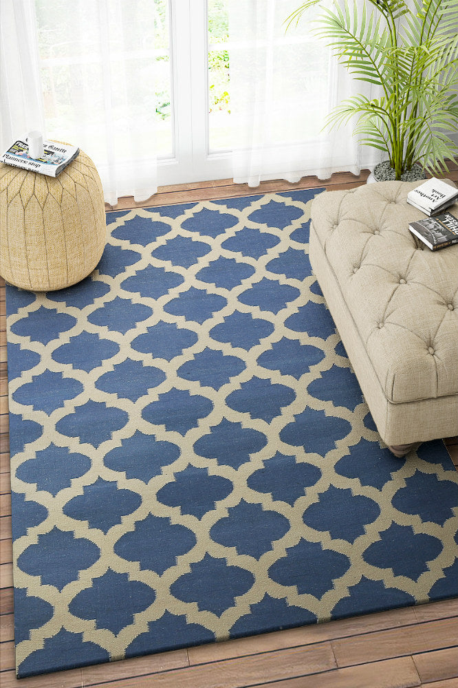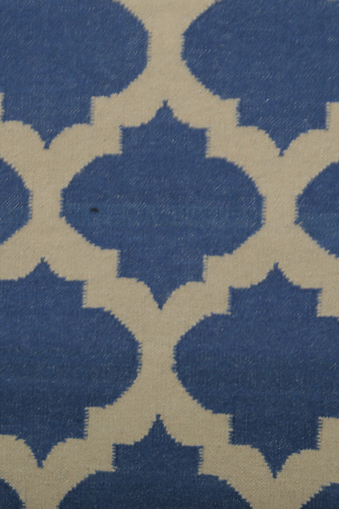 BLUE AND IVORY MOROCCAN HAND WOVEN DHURRIE