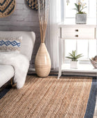 BLUE AND NATURAL JUTE KILIM HAND WOVEN DHURRIE