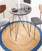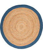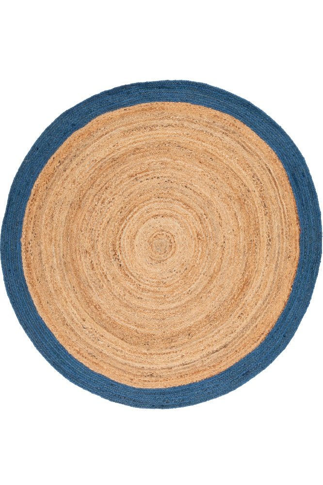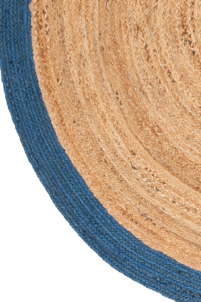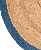 BLUE AND NATURAL ROUND JUTE HAND WOVEN DHURRIE