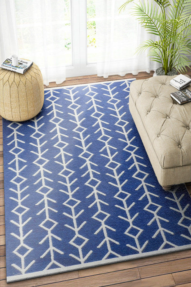 BLUE AND WHITE BESPOKE HAND WOVEN DHURRIE