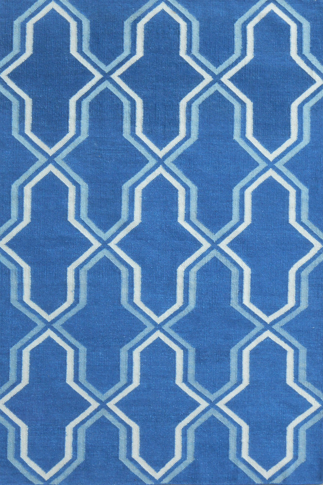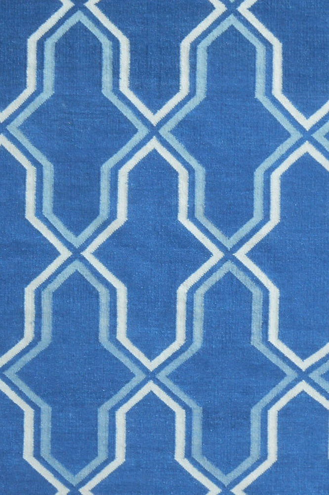 BLUE AND WHITE MOROCCAN HAND WOVEN DHURRIE