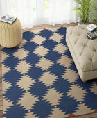 BLUE IVORY AZTEC HAND WOVEN KILIM DHURRIE