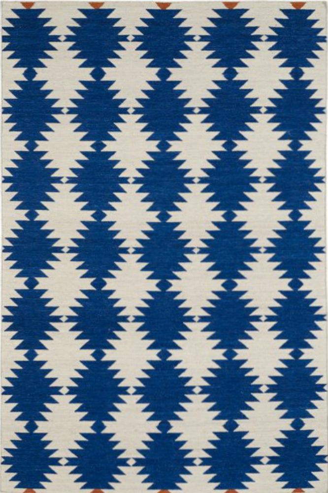 BLUE IVORY AZTEC HAND WOVEN KILIM DHURRIE