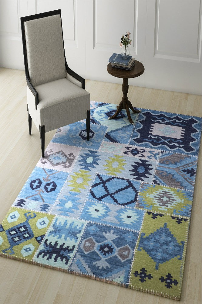 BLUE PATCHWORK HAND WOVEN KILIM DHURRIE