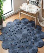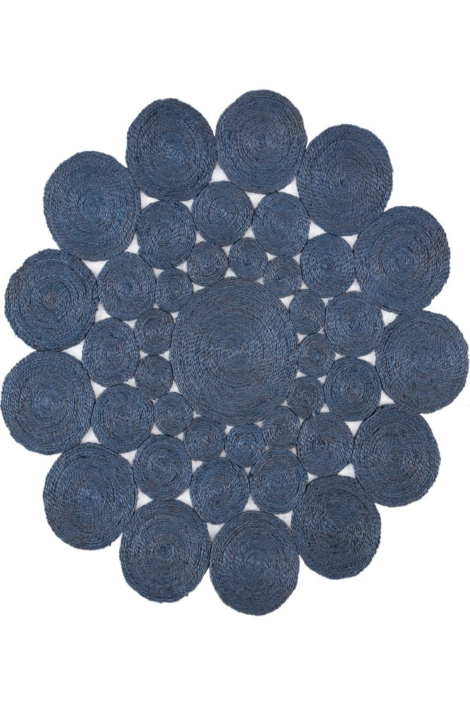 BLUE ROUND JUTE HAND WOVEN DHURRIE
