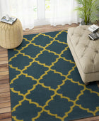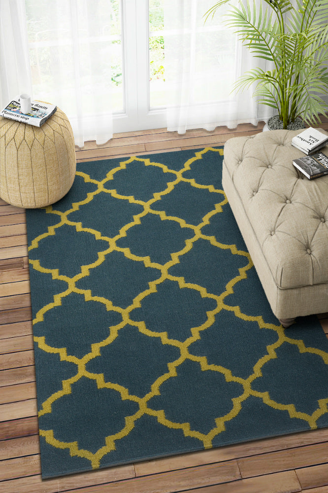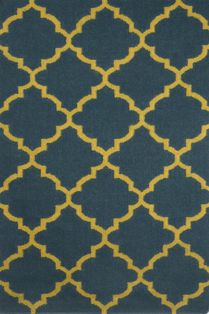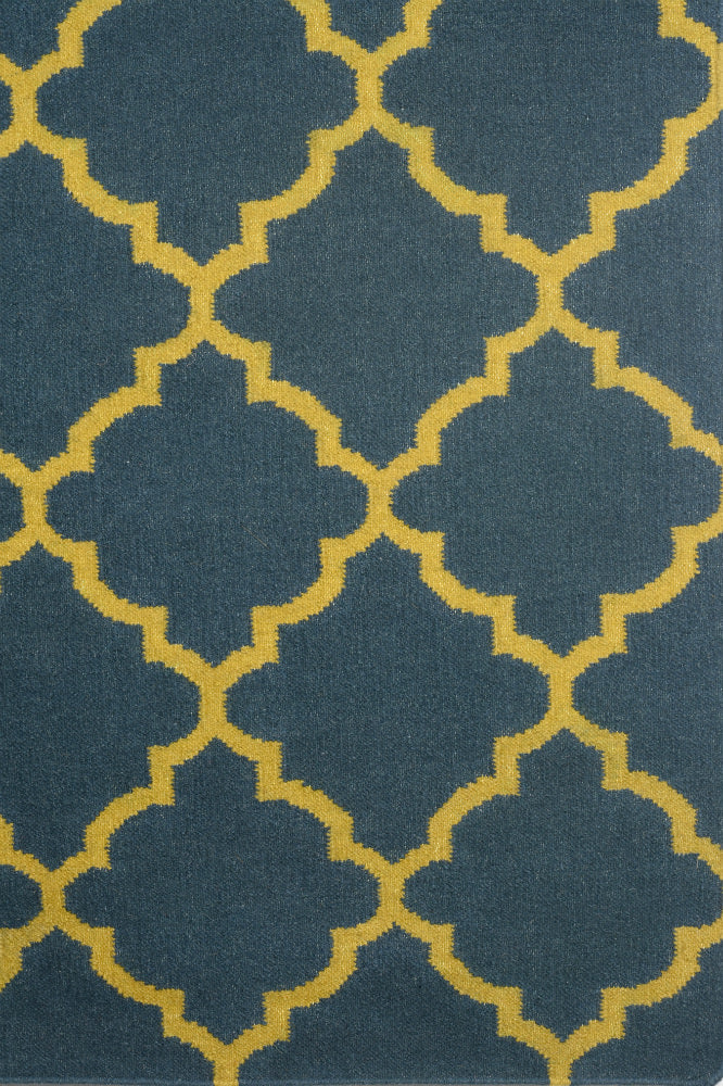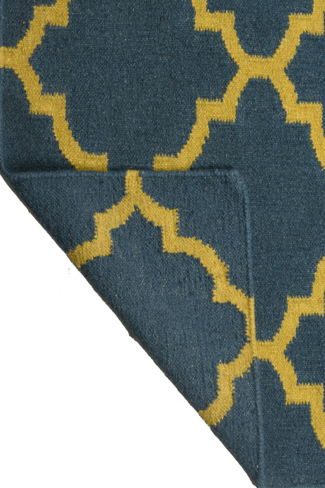 BLUE YELLOW MOROCCAN HAND WOVEN DHURRIE