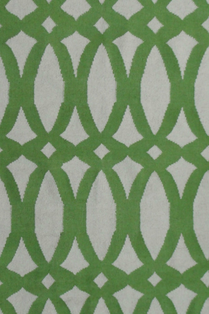 GREEN AND IVORY GEOMETRIC HAND WOVEN DHURRIE