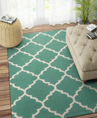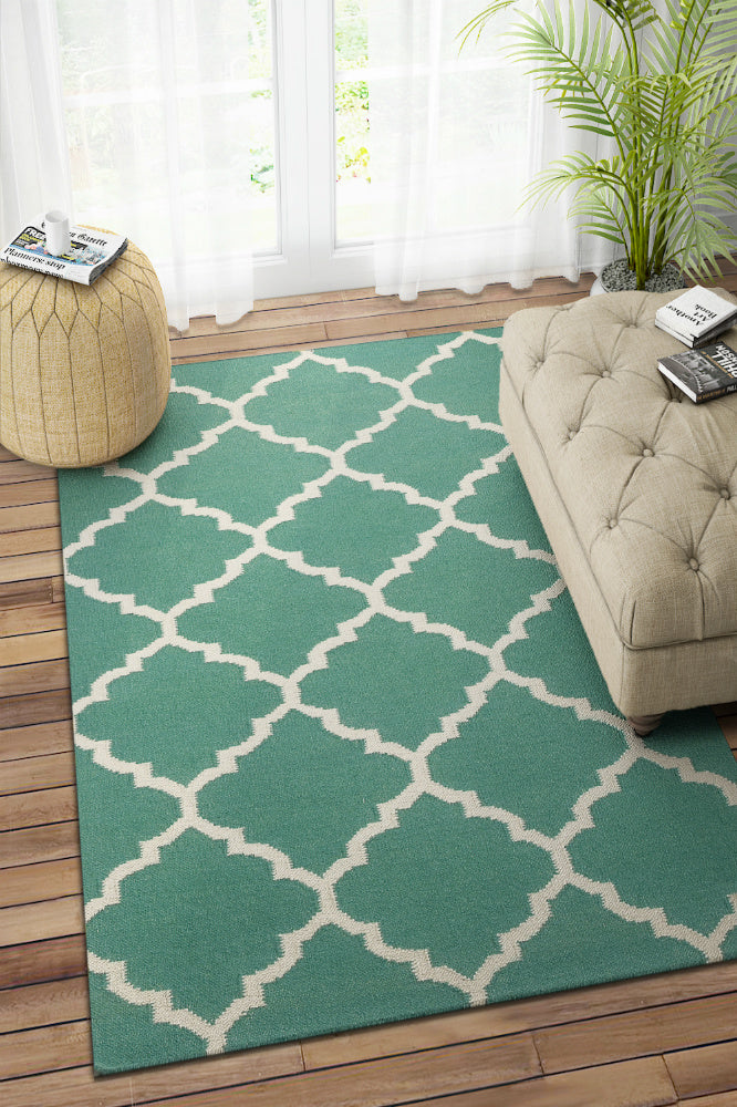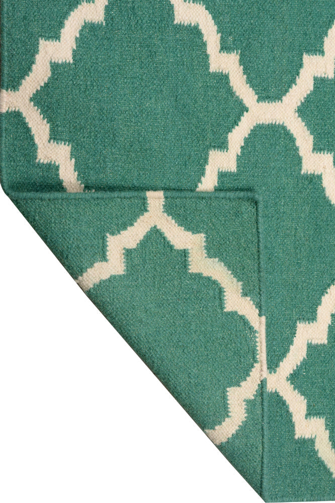 GREEN IVORY MOROCCAN HAND WOVEN DHURRIE