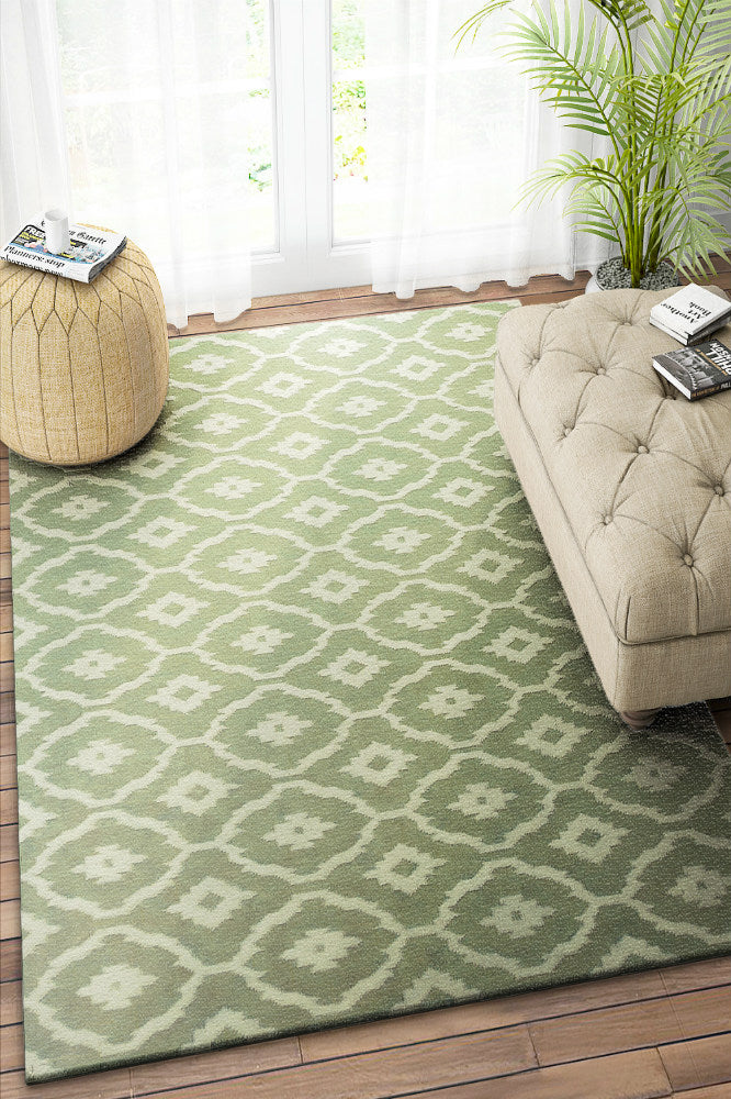 GREEN MOROCCAN HAND WOVEN DHURRIE