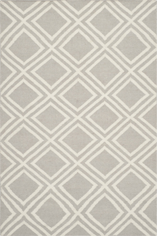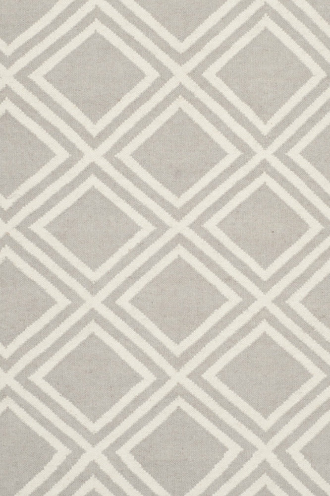 GREY AND IVORY GEOMETRIC HAND WOVEN DHURRIE