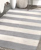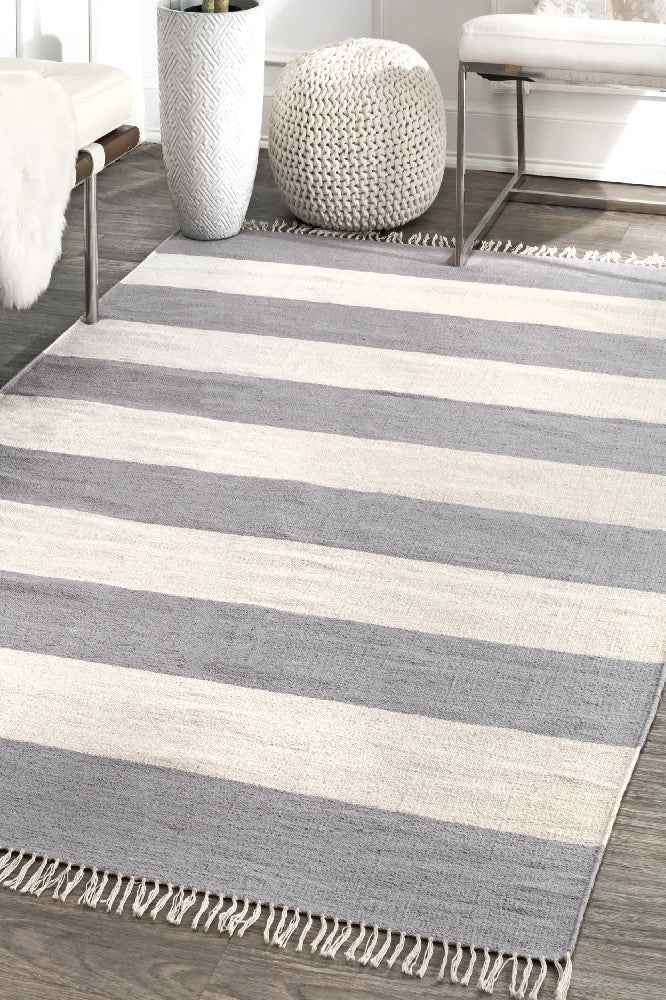 GREY AND IVORY STRIPES HAND WOVEN DHURRIE