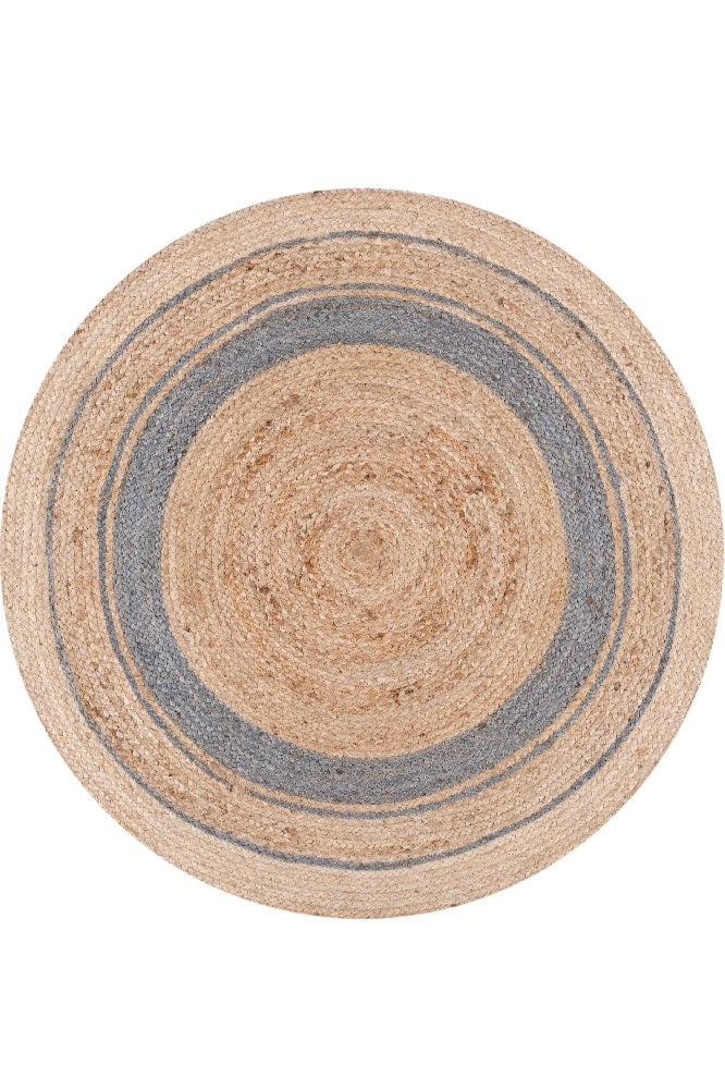 GREY AND NATURAL ROUND JUTE HAND WOVEN DHURRIE