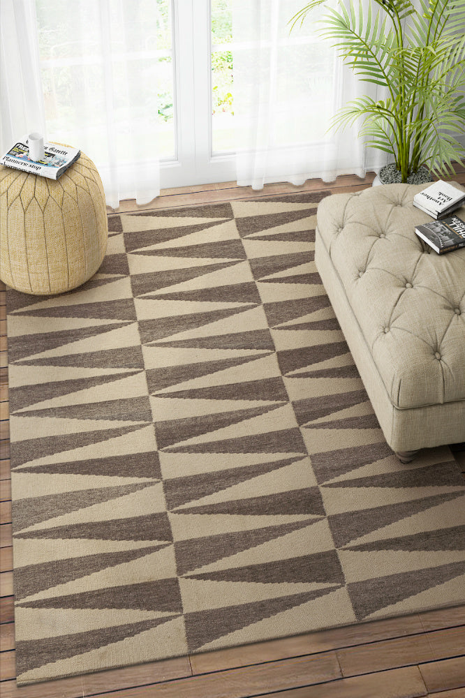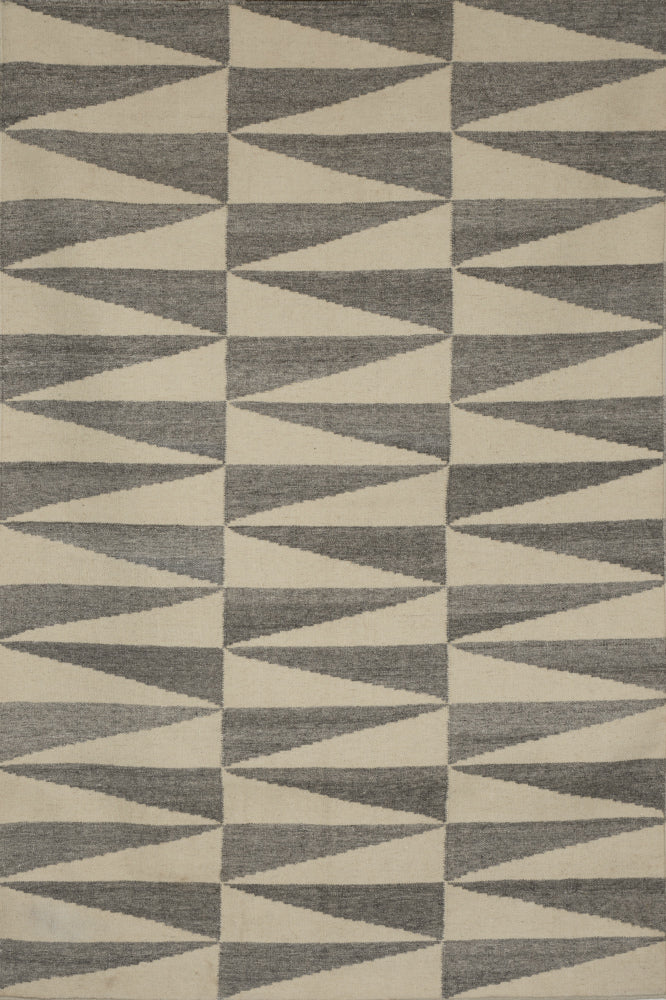 GREY IVORY GEOMETRIC HAND WOVEN DHURRIE