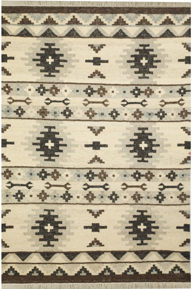 GREY IVORY HAND WOVEN KILIM DHURRIE