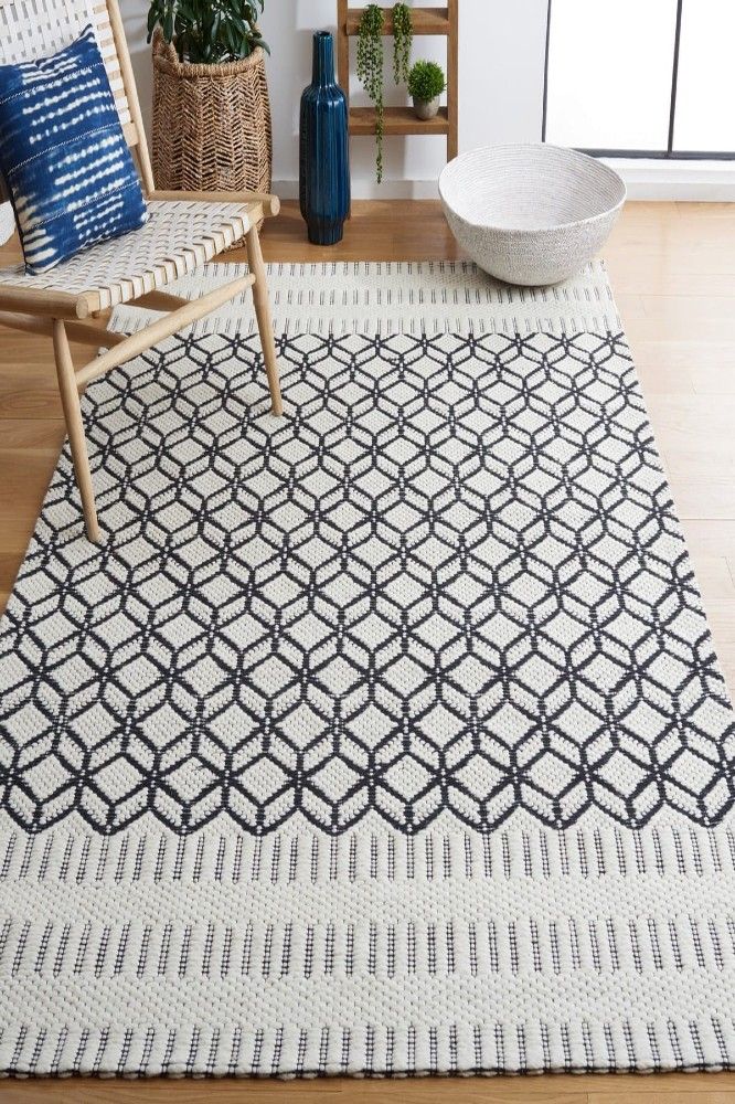 IVORY AND BLACK KILIM HAND WOVEN DHURRIE