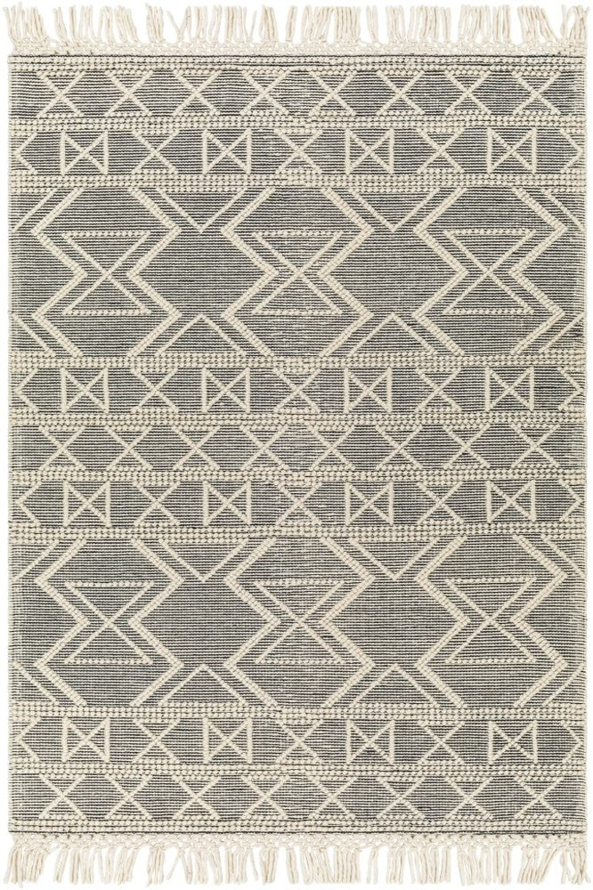 IVORY AND BLACK KILIM HAND WOVEN DHURRIE