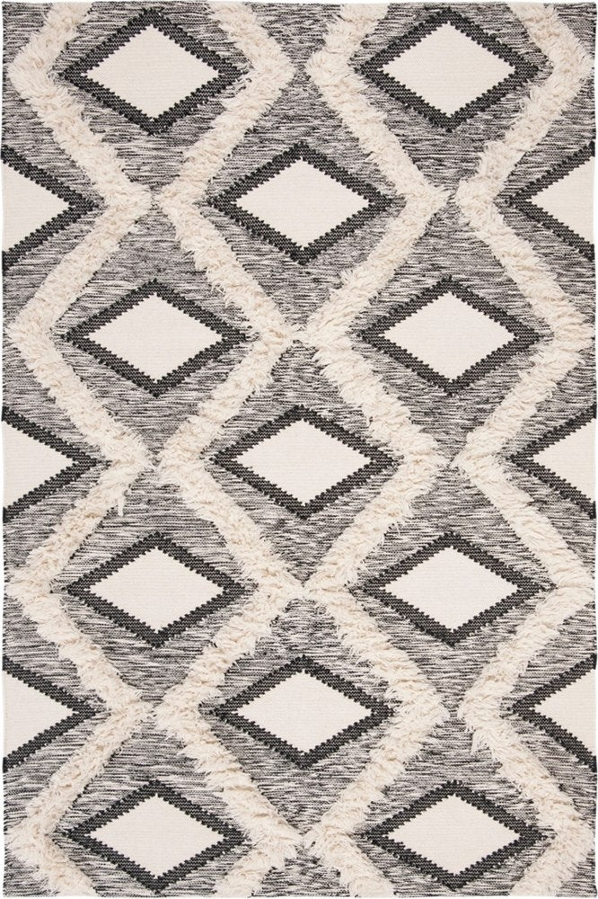 IVORY AND BLACK KILIM HAND WOVEN DHURRIE