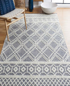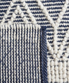 IVORY AND BLUE KILIM HAND WOVEN DHURRIE