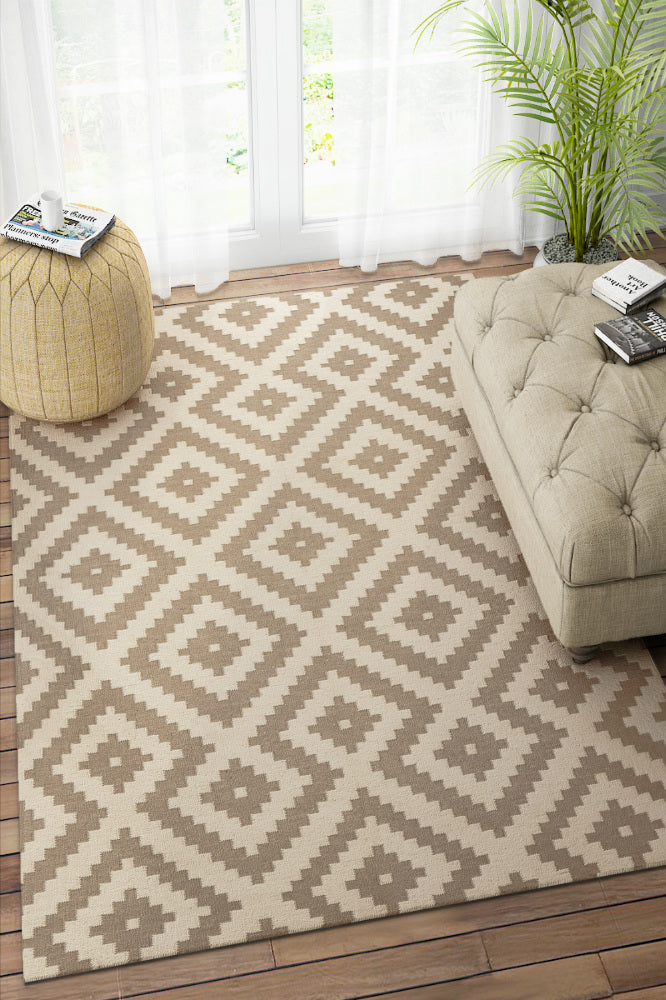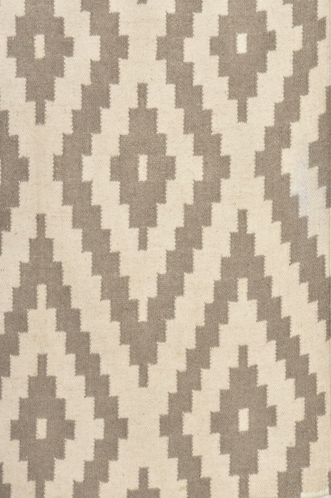 IVORY AND GREY GEOMETRIC HAND WOVEN DHURRIE