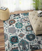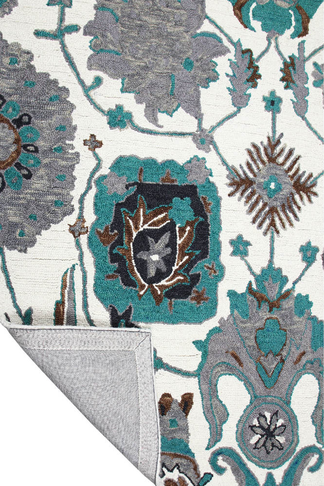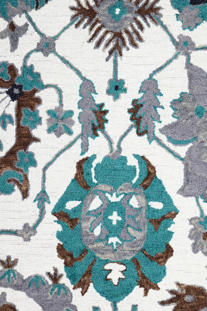IVORY AND TEAL SUZANI HAND TUFTED CARPET