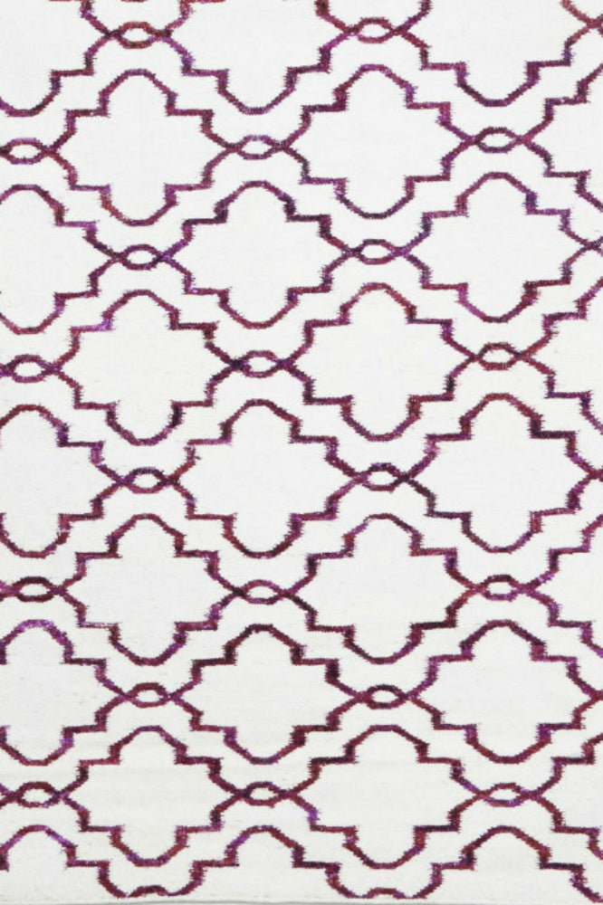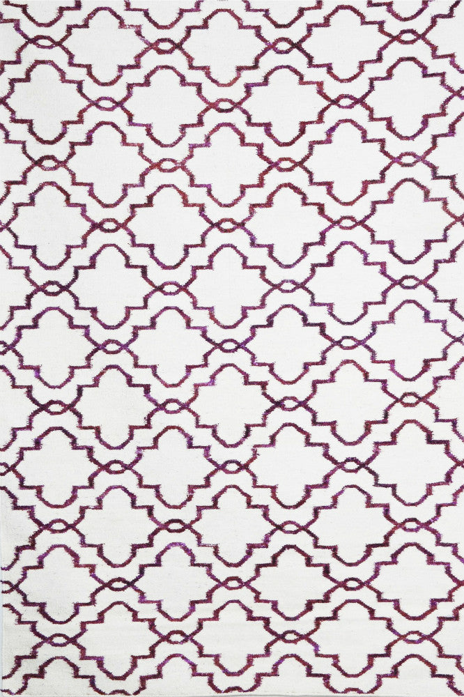 IVORY PURPLE MOROCCAN HAND WOVEN DHURRIE
