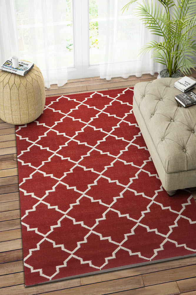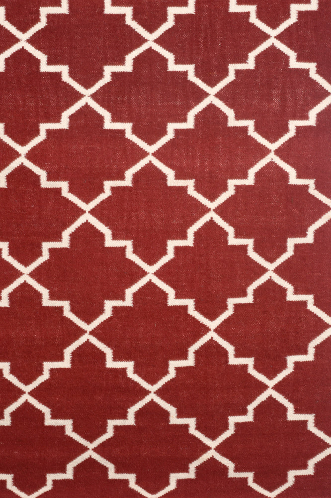 MAROON IVORY MOROCCAN HAND WOVEN DHURRIE
