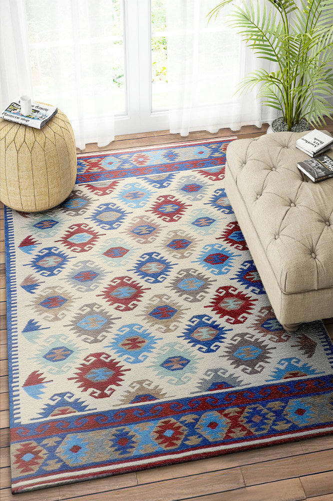 MULTICOLOR AZTEC HAND WOVEN KILIM DHURRIE