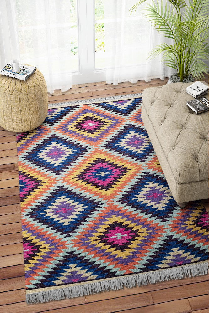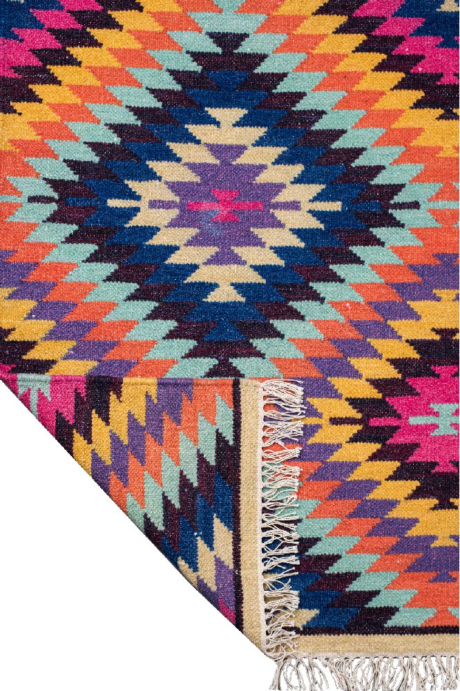 MULTICOLOR AZTEC KILIM HAND WOVEN DHURRIE