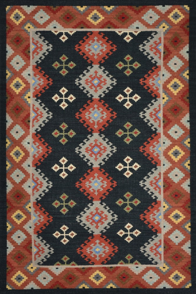 MULTICOLOR BLACK KILIM HAND WOVEN DHURRIE