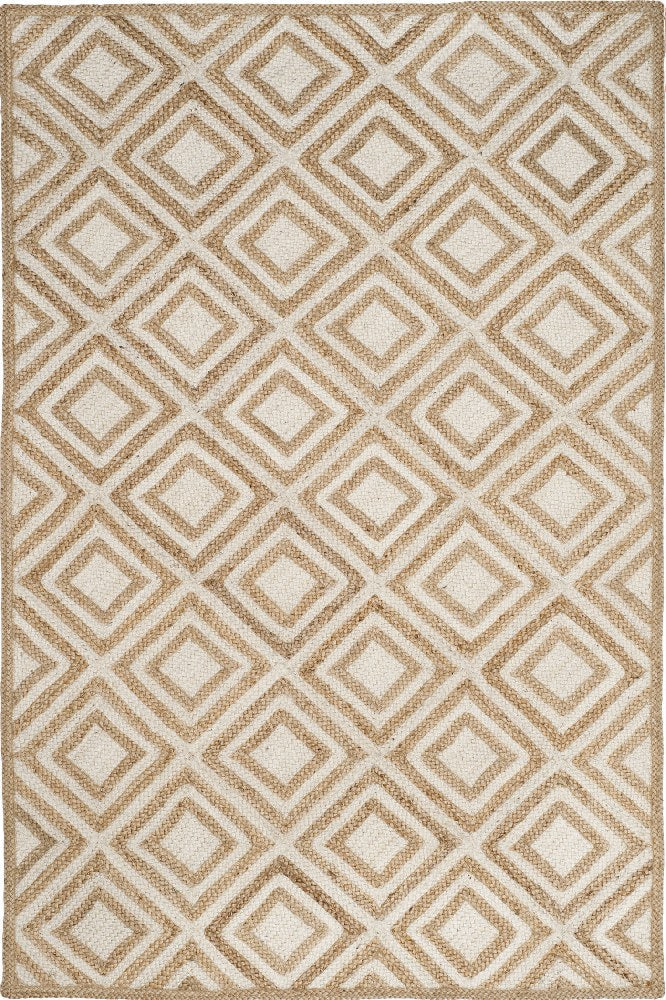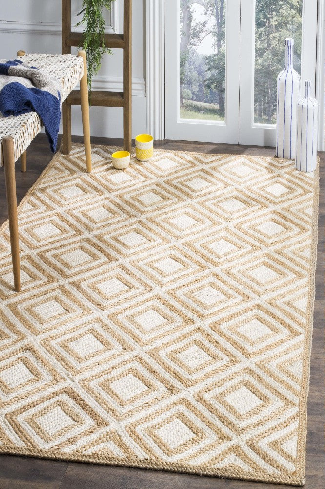 NATURAL IVORY GEOMETRIC JUTE HAND WOVEN DHURRIE