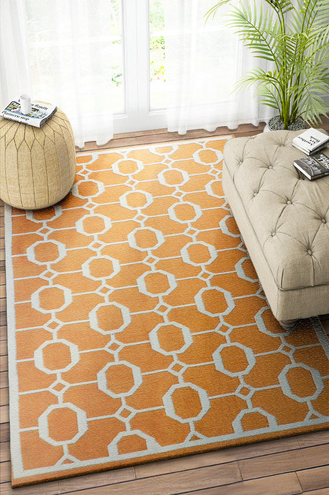 ORANGE LINKS HAND WOVEN DHURRIE