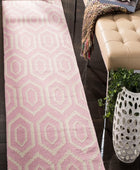 PINK AND IVORY DIAMOND HAND WOVEN DHURRIE