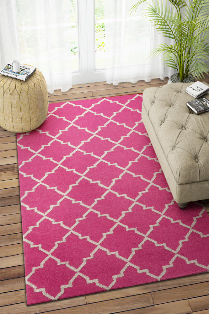 PINK AND IVORY MOROCCAN HAND WOVEN DHURRIE