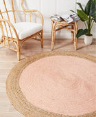 PINK AND NATURAL ROUND JUTE HAND WOVEN DHURRIE