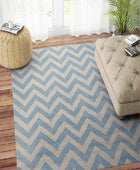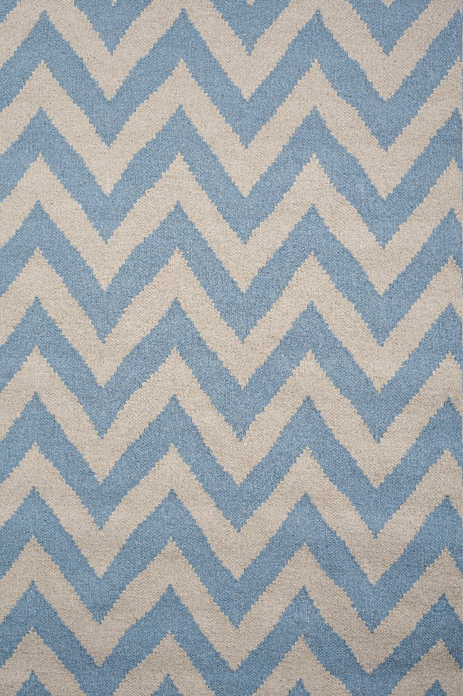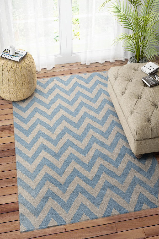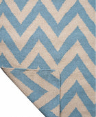 POWDER BLUE AND IVORY CHEVRON HAND WOVEN DHURRIE