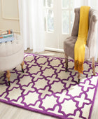 PURPLE AND IVORY GEOMETRIC HAND TUFTED CARPET