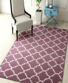 PURPLE AND IVORY MOROCCAN HAND WOVEN DHURRIE