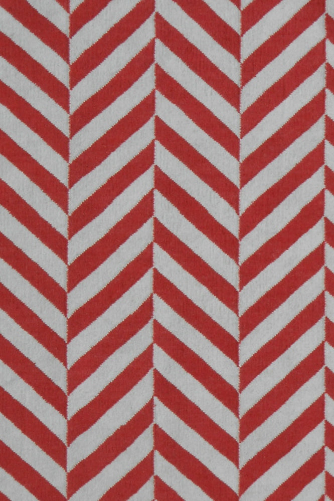 RED AND IVORY CHEVRON HAND WOVEN DHURRIE