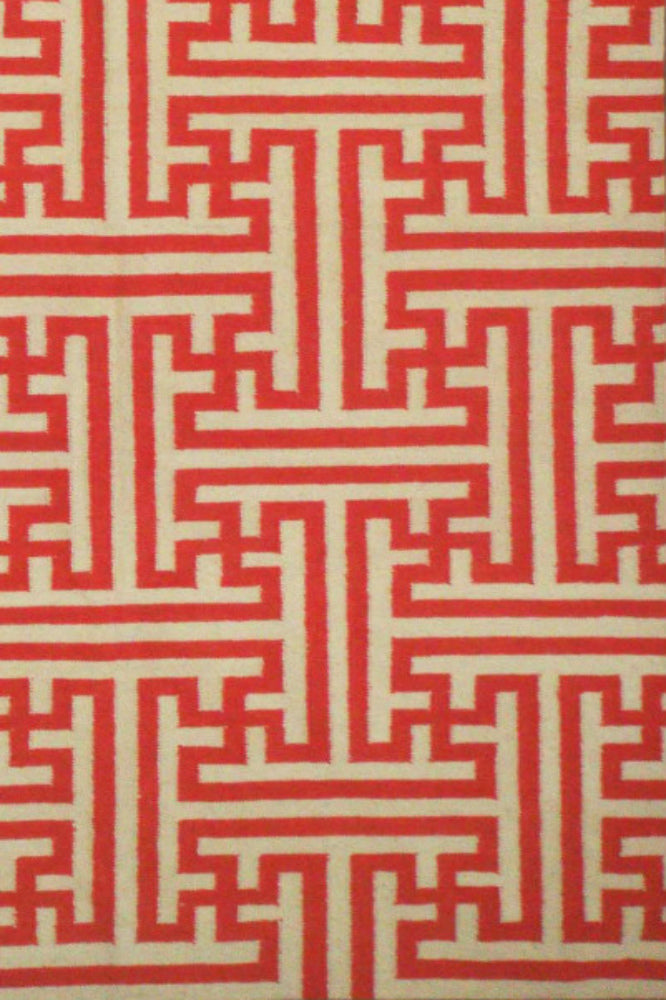 RED AND IVORY GREEK KEY HAND WOVEN DHURRIE